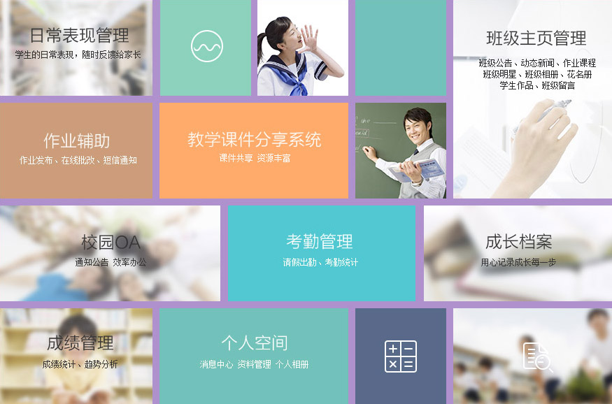 采用图标式的操作方式,让老师工作更轻松;特有的科学自助式评价体系,灵活凸显办学特色;是老师教育教学的好帮手;