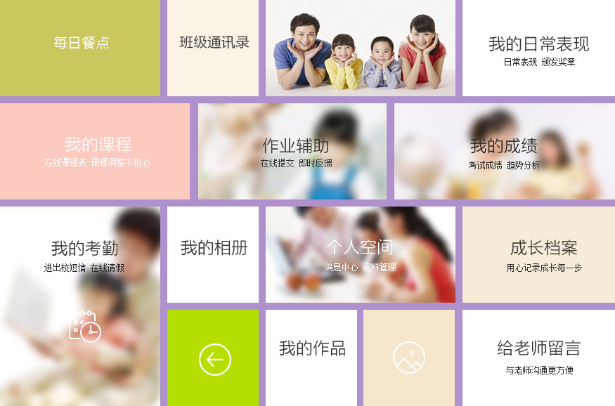 孩子的日常表现、作业、成绩、考勤等进行统计及分析。